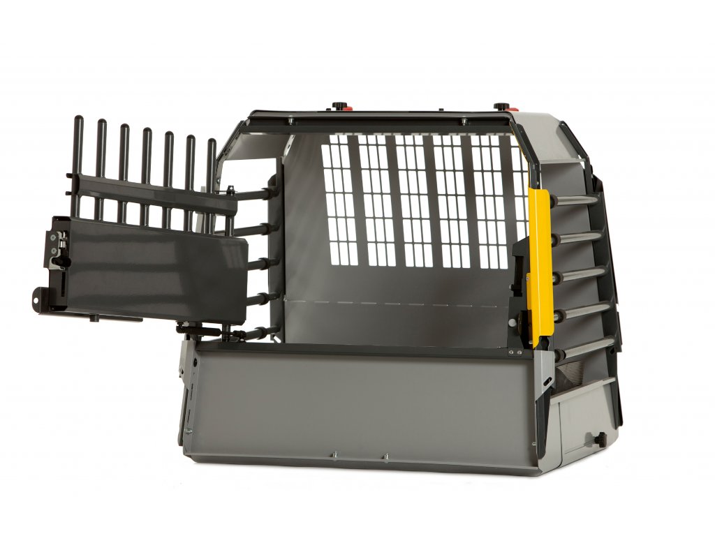 Vďaka teleskopickým tyčiam je klietka hĺbkovo nastaviteľná, využíva teda optimálny priestor batožinového priestoru Vášho automobilu. Exponované časti klietky sú ošetrené proti korózii a dvere sú vybavené bezpečnostnými zámkami a hydraulickými pántami pre lepšie ovládanie dverí.