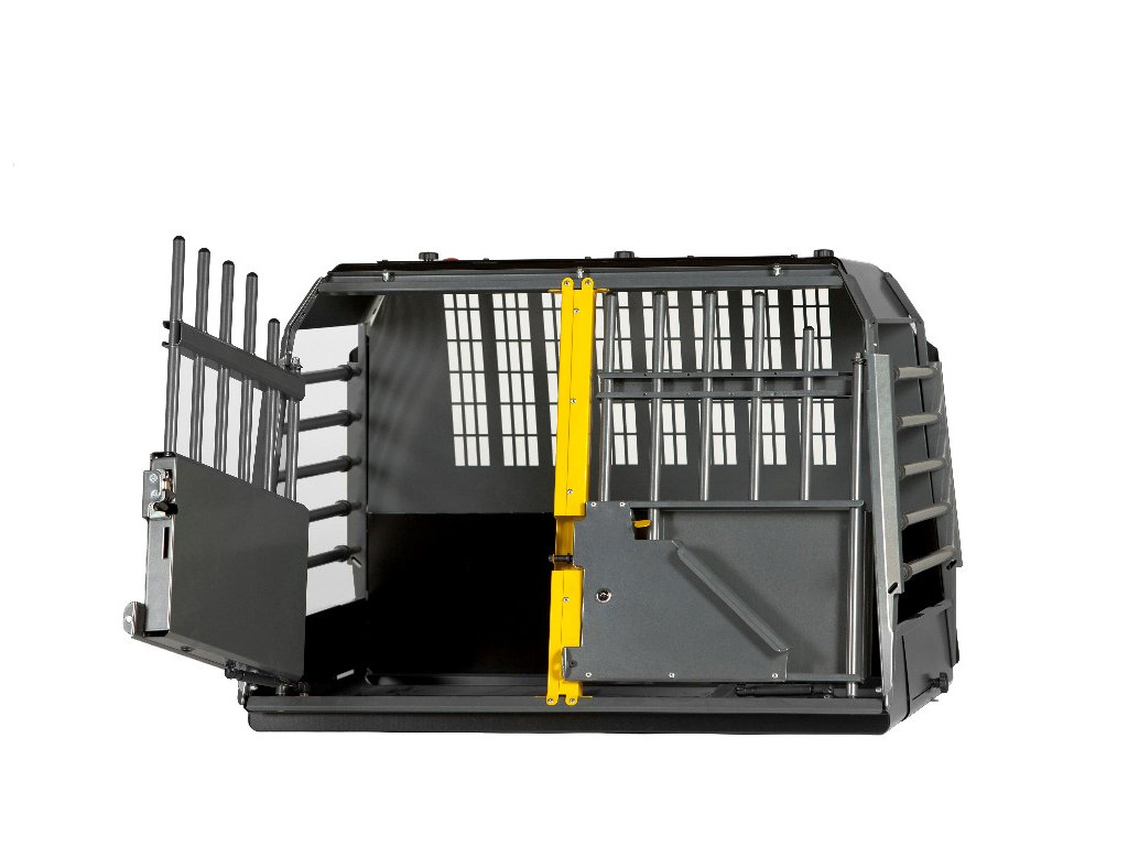 Vďaka teleskopickým tyčiam je klietka hĺbkovo nastaviteľná, využíva teda optimálny priestor batožinového priestoru Vášho automobilu. Exponované časti klietky sú ošetrené proti korózii a dvere sú vybavené bezpečnostnými zámkami a hydraulickými pántami pre lepšie ovládanie dverí.