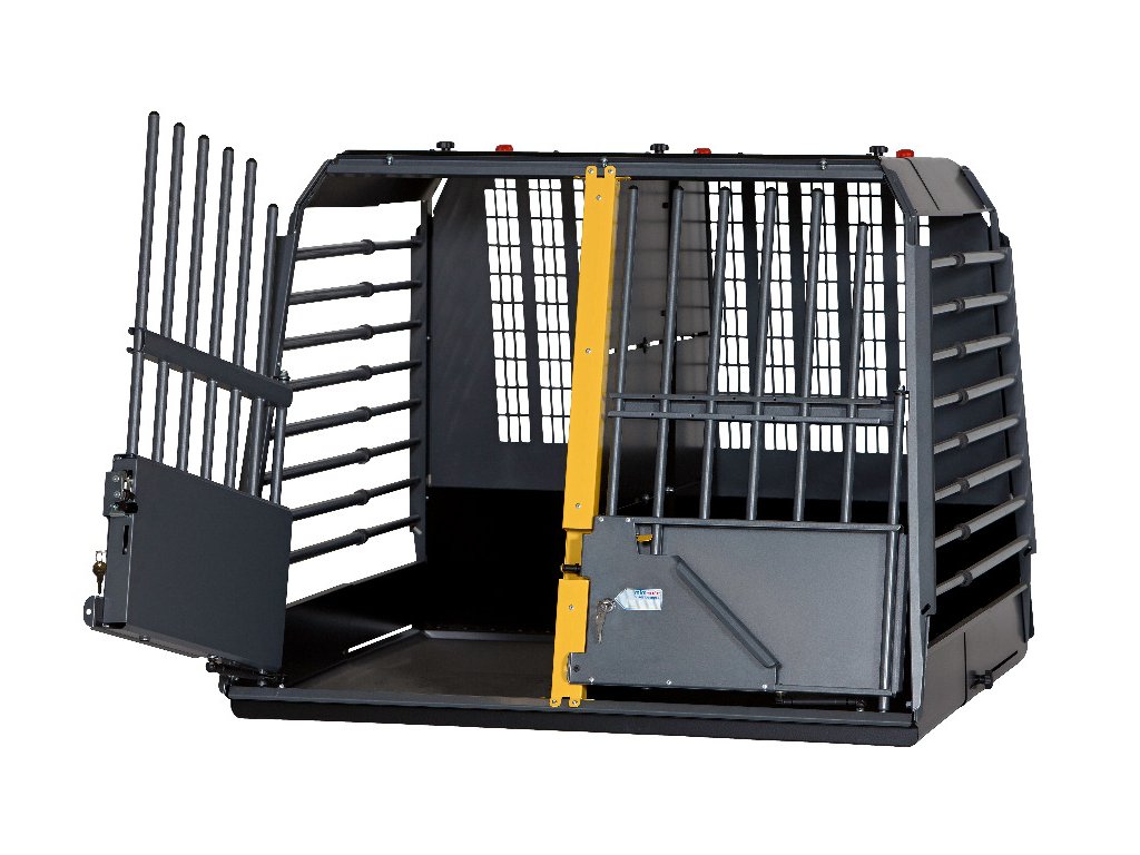 Vďaka teleskopickým tyčiam je klietka hĺbkovo nastaviteľná, využíva teda optimálny priestor batožinového priestoru Vášho automobilu. Exponované časti klietky sú ošetrené proti korózii a dvere sú vybavené bezpečnostnými zámkami a hydraulickými pántami pre lepšie ovládanie dverí.