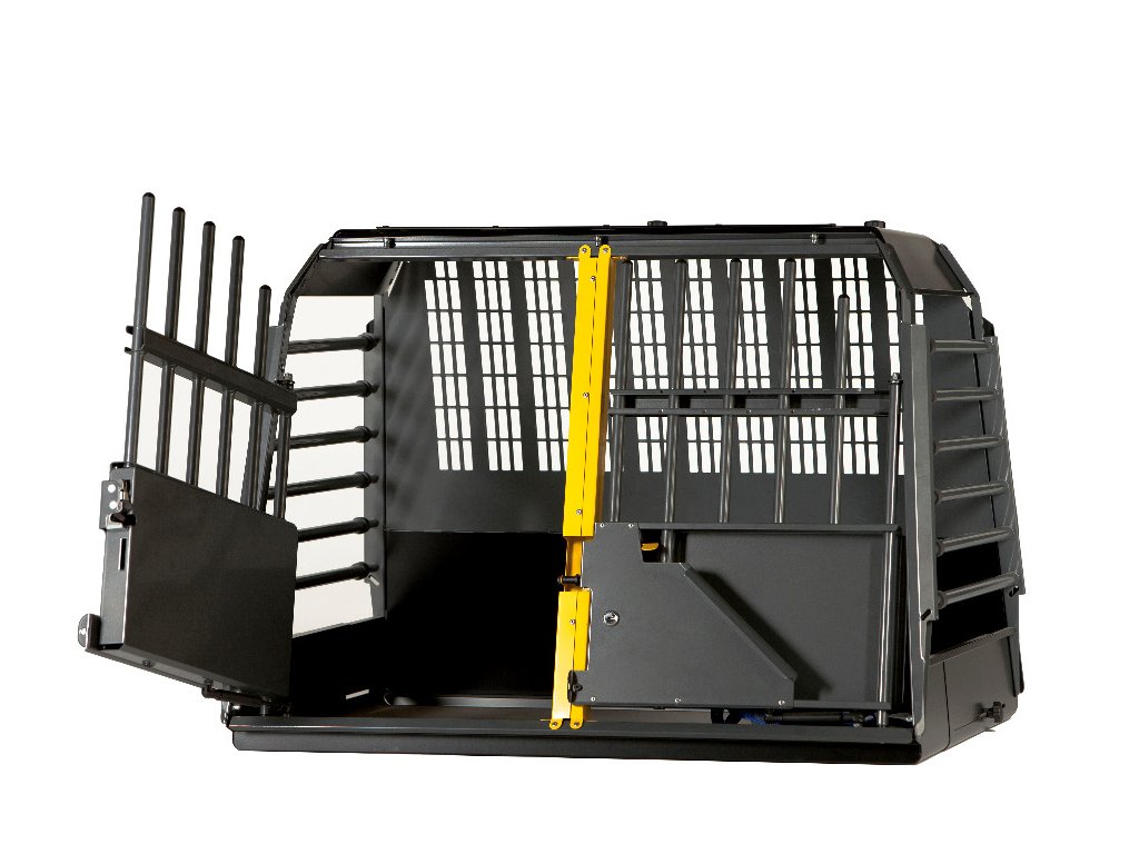 Vďaka teleskopickým tyčiam je klietka hĺbkovo nastaviteľná, využíva teda optimálny priestor batožinového priestoru Vášho automobilu. Exponované časti klietky sú ošetrené proti korózii a dvere sú vybavené bezpečnostnými zámkami a hydraulickými pántami pre lepšie ovládanie dverí.