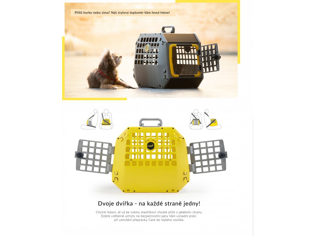 Care² je bezpečná a veľmi praktická prepravka pre zvieratá do auta, ktorá je navyše prenosná.