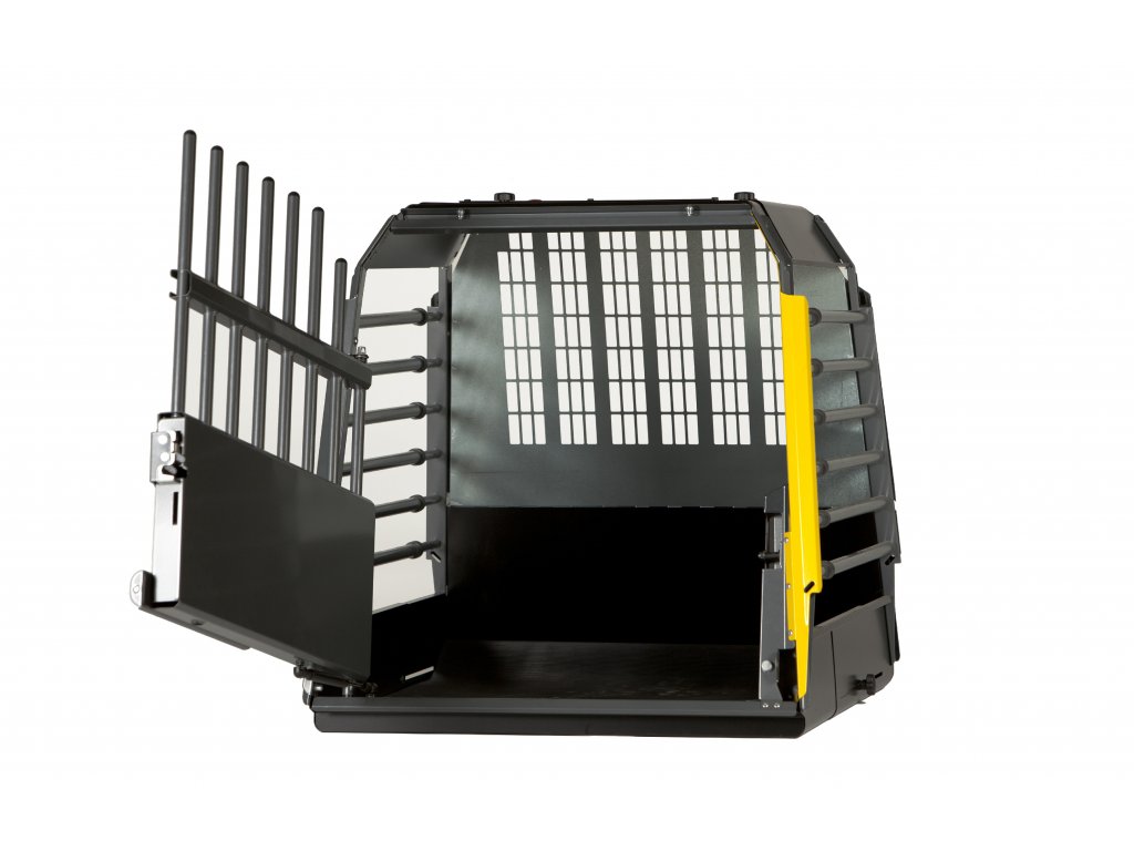 Vďaka teleskopickým tyčiam je klietka hĺbkovo nastaviteľná, využíva teda optimálny priestor batožinového priestoru Vášho automobilu. Exponované časti klietky sú ošetrené proti korózii a dvere sú vybavené bezpečnostnými zámkami a hydraulickými pántami pre lepšie ovládanie dverí.