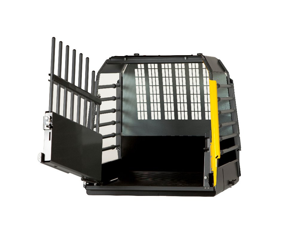 Vďaka teleskopickým tyčiam je klietka hĺbkovo nastaviteľná, využíva teda optimálny priestor batožinového priestoru Vášho automobilu. Exponované časti klietky sú ošetrené proti korózii a dvere sú vybavené bezpečnostnými zámkami a hydraulickými pántami pre lepšie ovládanie dverí.